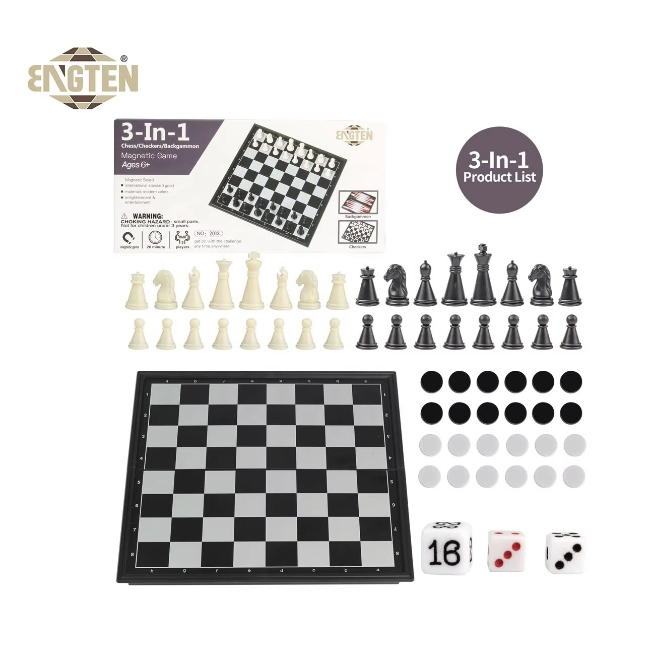 3 in 1 Magnetic Game Board (Chess, Checkers, Backgammon)